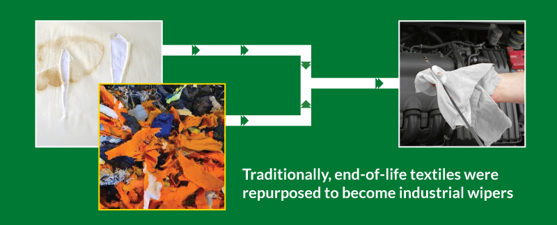 Over time, all uniforms and PPE items, such as gloves, aprons, and hairnets, reach the end of their useful life. We also produce waste such as lint during laundering. In the past, the usual approach was to turn these materials into cleaning rags or send them to landfills.