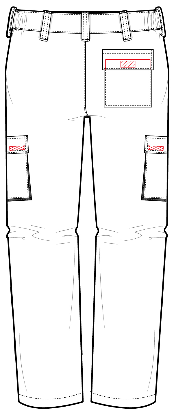 - Two (2) bellowed thigh pockets with hook and loop fastened pocket flaps