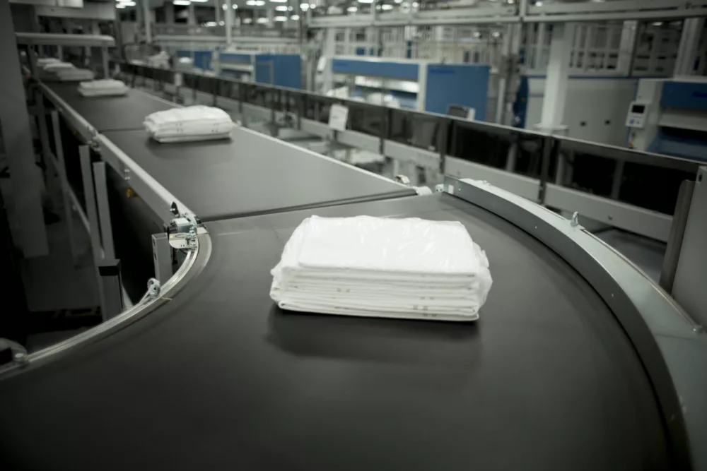 We have reduced the thickness of the essential film from 13 microns to 12, which is used to protect the integrity of our high-quality linen products and save them from dust, moisture, and other external elements during delivery and onsite storage. The shrink film process guarantees the linen arrives to our customers in its intended high quality and is kept in that condition.