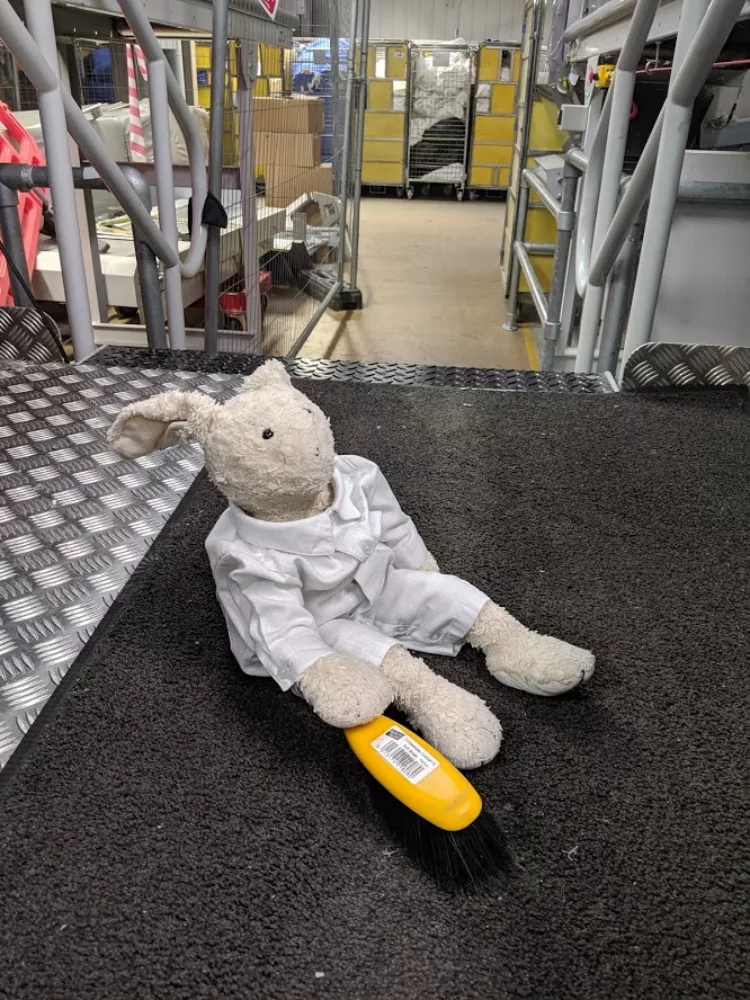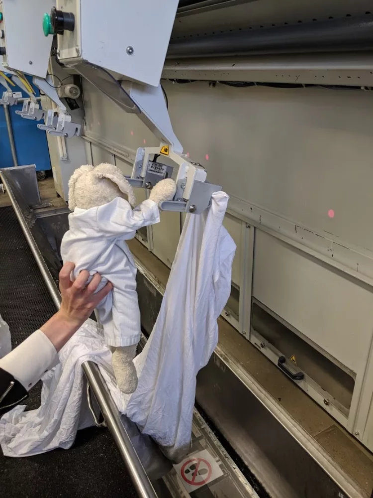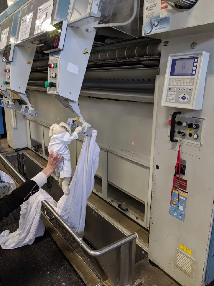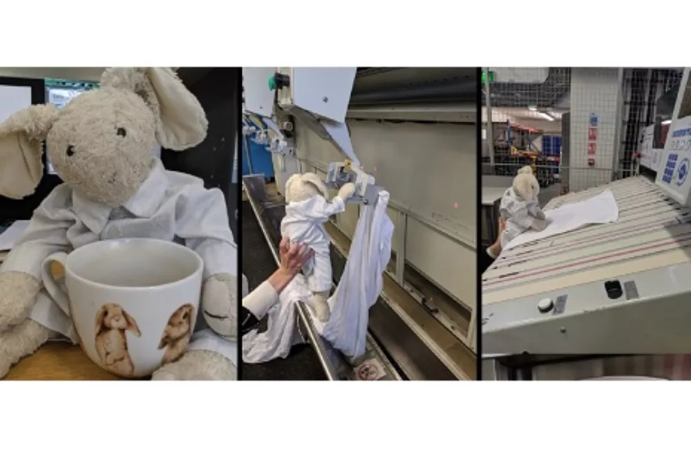 Once found, the team at the laundry wrote the owner a story of the toy’s day spent at CLEAN, featuring images of the bunny attending important board room meetings and trying out the brand-new sorting platform, before being sent in the post. The owner, who lives in America, was visiting family in East Sussex where the toy has been returned.