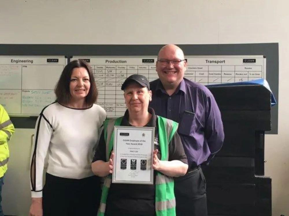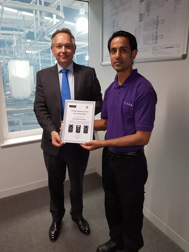 One employee from each of CLEAN’s eight sites was presented with a framed certificate and a £100 Amazon voucher by a member of its operational board.